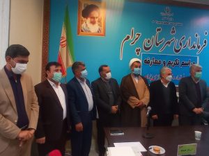 در این جلسه از زحمات سید الیاس افسردیر در زمان تصدی بخشداری مرکزی چرام،پاداش معاون امنیتی سیاسی و سرتیپ خادمی معاون امور عمرانی فرمانداری تقدیر و صمد امینی بعنوان بخشدار مرکزی شهرستان چرام، علی خردمند بعنوان معاون سیاسی، ولی سعادت نشان در منصب معاون عمرانی فرمانداری این شهرستان معرفی شدند.